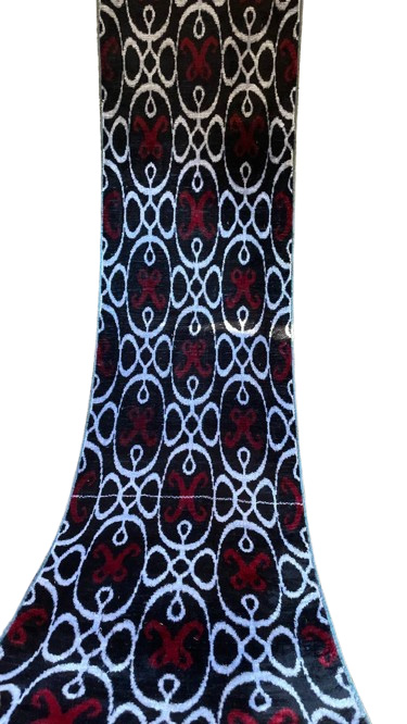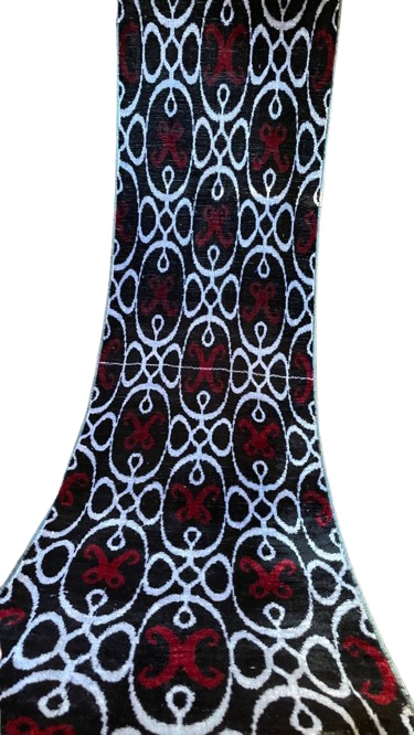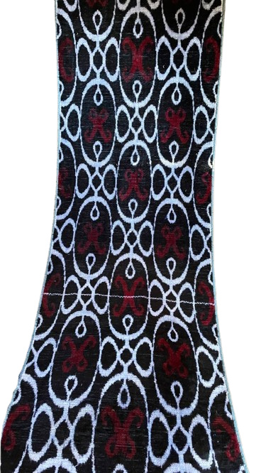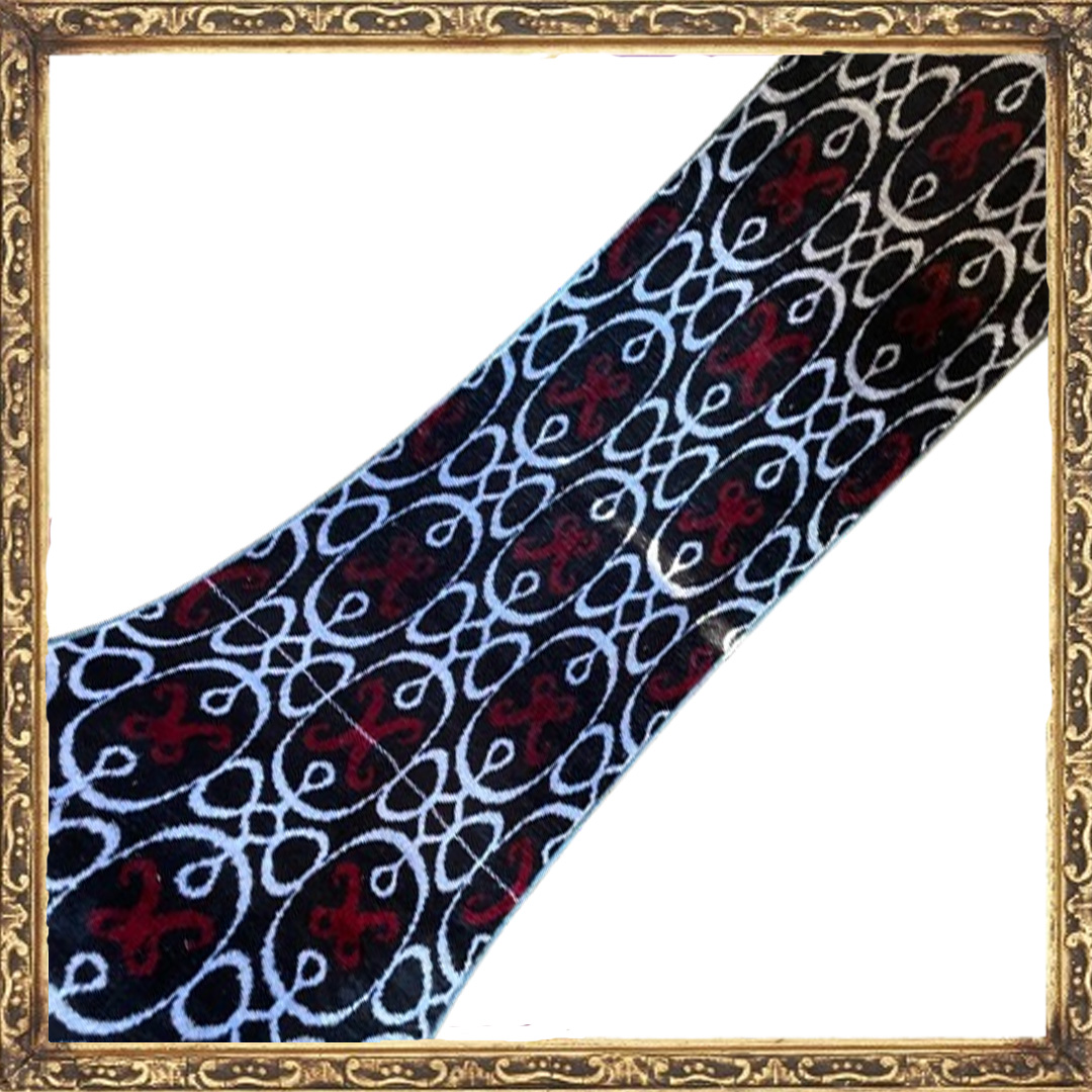Indem Sie sich für diesen authentischen Textil entscheiden, investieren Sie in ein Stück gewebter Pracht und erwerben einen Schwarzer Weißer Roter Ikat Samtstoff, der königliche Eleganz in Ihre Welt bringen wird.