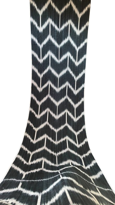 Al elegir este textil auténtico, está invirtiendo en un clásico del diseño, adquiriendo un Tejido Ikat Clásico Blanco Negro que será una piedra angular de la elegancia para toda la vida.