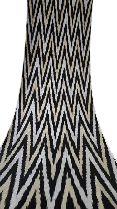 Al elegir este textil auténtico, está invirtiendo en un diseño que es a la vez un tema de conversación y un clásico atemporal, adquiriendo un Tejido Ikat Zigzag Negro Gris que definirá su estilo.