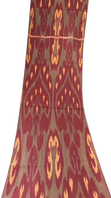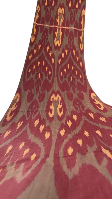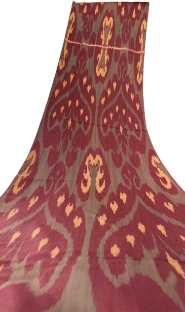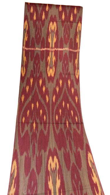 Un design d’une telle énergie vibrante nécessite un matériau capable de montrer sa puissance. Ce Ikat flamme épicée est généralement fabriqué à partir d’un mélange Adras de premier choix de soie et de coton. La soie est essentielle pour obtenir la saturation lumineuse du rouge et l’éclat du jaune. Le coton apporte le corps et la structure nécessaires, garantissant la durabilité du textile.