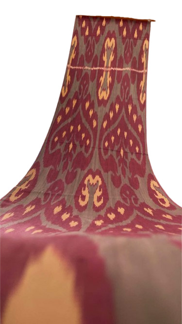 Certains textiles existent simplement ; d’autres brûlent d’une intensité indéniable, enflammant l’imagination. Ce textile extraordinaire d’Ouzbékistan est un chef-d’œuvre de design passionné, un Ikat flamme épicée vraiment captivant qui vibre de la chaleur des marchés exotiques.