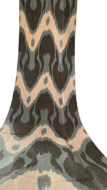 Dans le monde de l’art textile, certains motifs transcendent le simple motif pour capturer la beauté éthérée des phénomènes naturels. Ce tissu extraordinaire d’Ouzbékistan est un chef-d’œuvre de design atmosphérique : un Ikat vague de fumée vraiment captivant qui évoque les subtiles ondulations du brouillard.