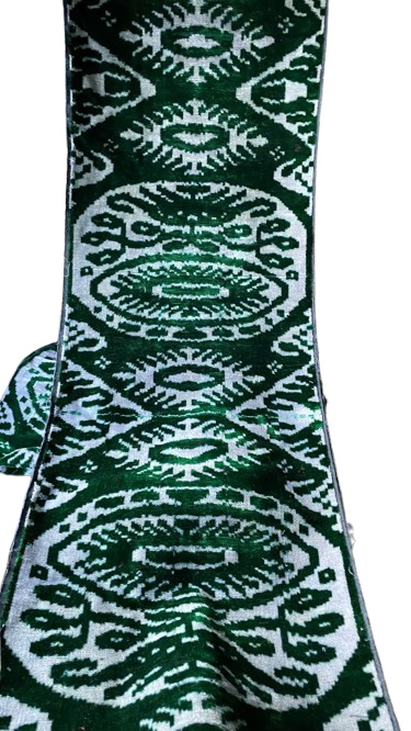 En choisissant ce textile authentique, vous investissez dans une pièce de magnificence tissée, acquérant un Velours Ikat Vert et Blanc qui apportera une splendeur royale et une âme artistique dans votre monde.