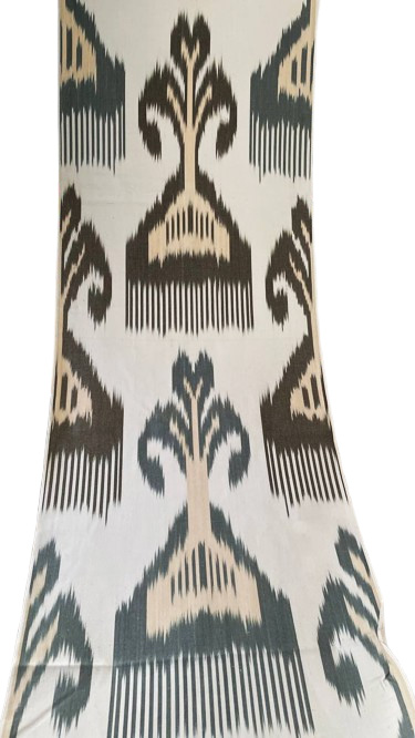 Nel vasto lessico dei design tessili, alcuni motivi possiedono un’innata capacità di trasportarti verso paesaggi distanti e tranquilli. Questo straordinario tessuto dall’Uzbekistan è un capolavoro di tale arte evocativa: un Ikat palma veramente affascinante che sussurra di antiche oasi e della dignità del deserto.