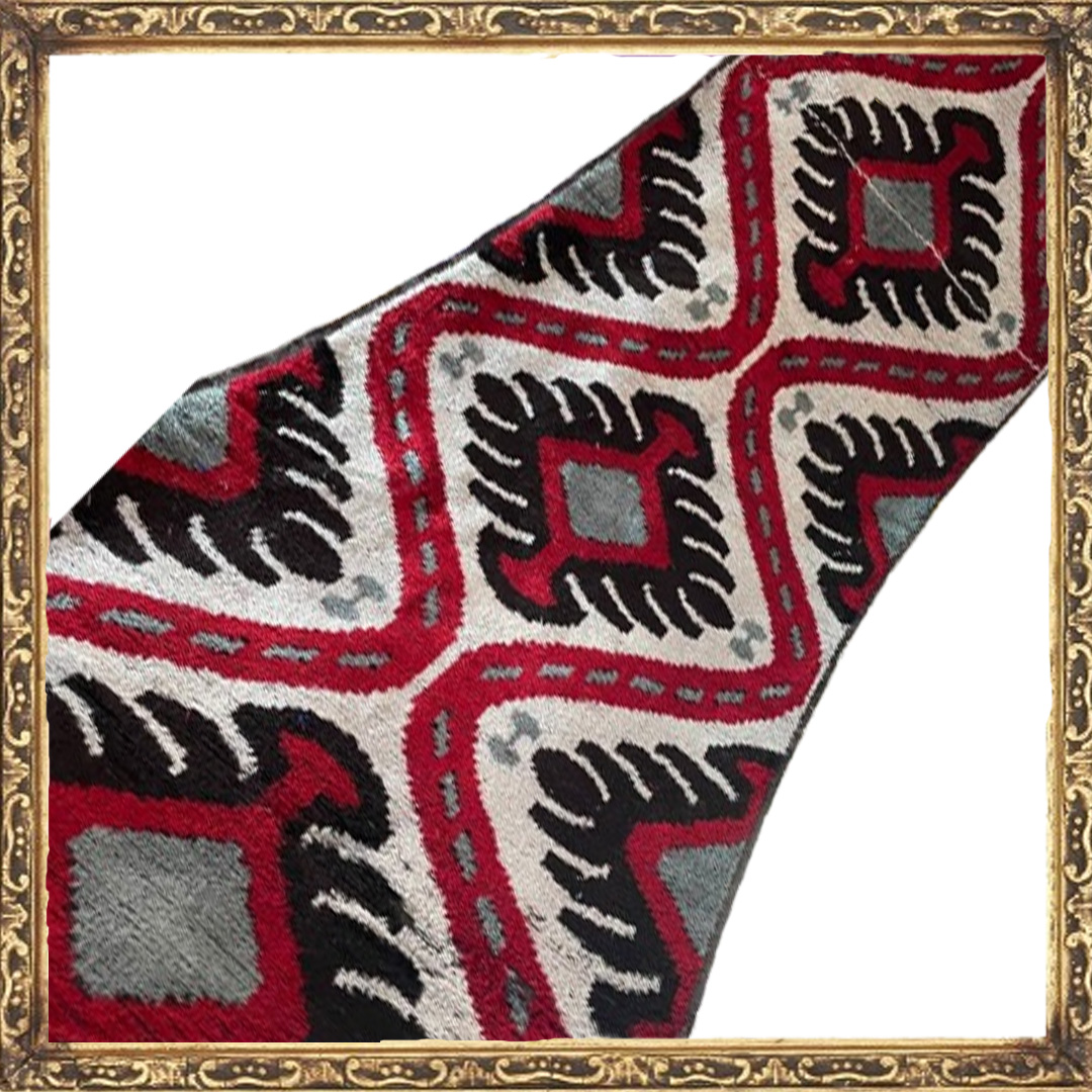 Sperimenta la sofisticazione ardente: L’autentico Velluto Ikat Rosso Nero e Grigio