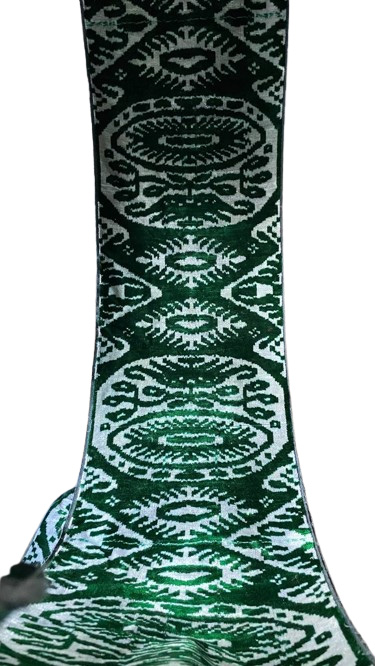 By choosing this authentic textile, you are not just acquiring a fabric. You are investing in a piece of woven magnificence, celebrating a centuries-old craft that turns natural fibers into unparalleled luxury, and acquiring a Green White Ikat Velvet that will bring a sense of royal splendor and artistic soul into your world.